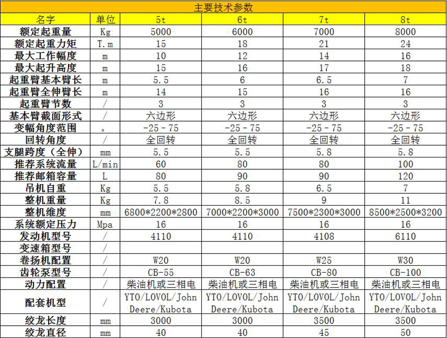 八:拖拉機(jī)吊車的技術(shù)參數(shù)